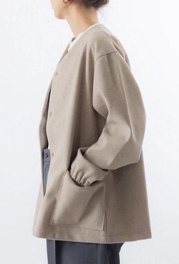 コートなどに使われるメルトンのようなウォーム感のあるニット素材。