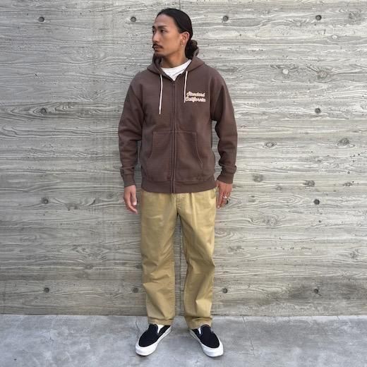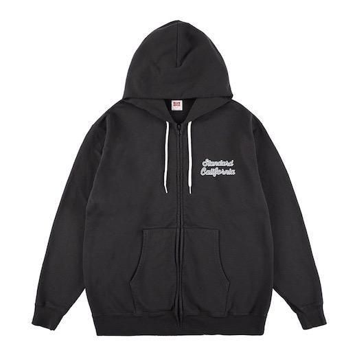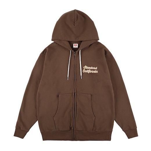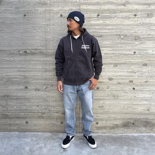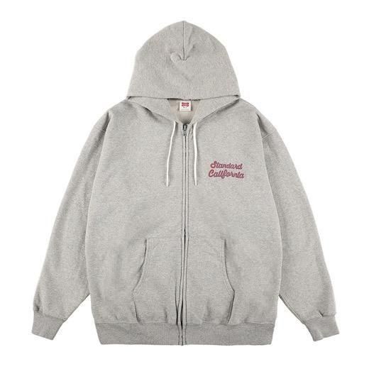 ツートンカラーが新鮮なスクリプトロゴをプリントしたUSコットンジップフードスウェット。