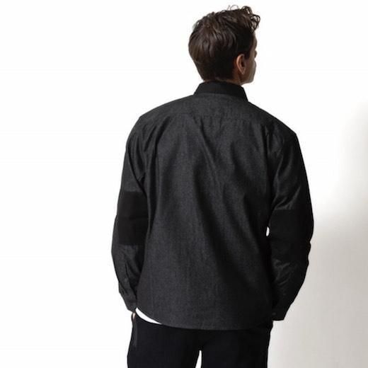 ノンウォッシュでストレッチ性のあるリジットデニム生地を採用し、襟や肘の補強には適度な厚みを持つWOOLベースの生地を採用。