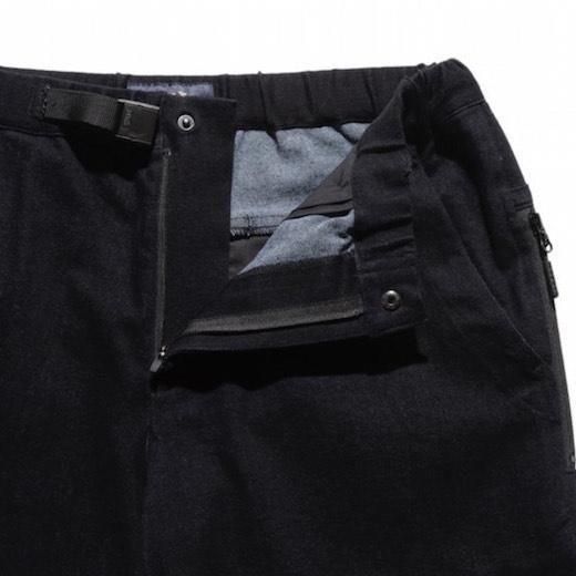 180度自然な開脚が可能なガゼットクロッチ、象徴的なバーティカルジップポケット、片手でも調整可能なベルトの仕様と高い機能性も併せ持つ。