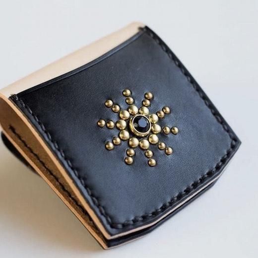ミニマル SUNNYスタッズウォレットBLACK x NATURAL / BLACKステッチ