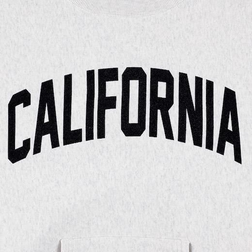フロントにはカレッジもので人気の高い大きめのカリフォルニアアーチロゴ、バックのネック部分にはシールドロゴをプリントしました。