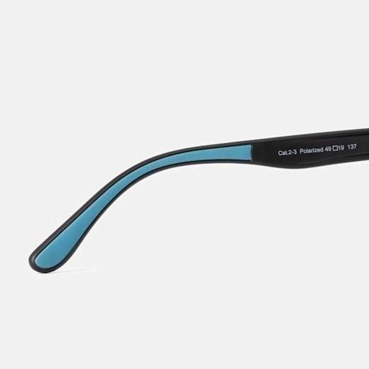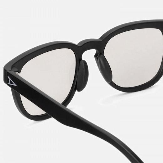 フレームはマットブラック、レンズは紫外線量により明るさが変わる調光機能と、反射光をカットし視界をクリアに見やすくする偏光機能を兼ね備えています。