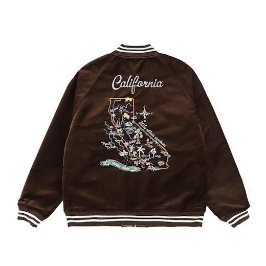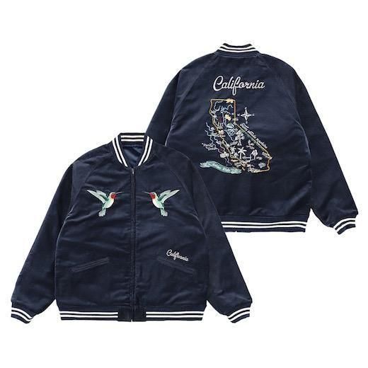 別珍とサテンのリバーシブル仕様で、別珍面は平和で穏やかな雰囲気のカリフォルニアをイメージし、フロントにはハミングバード、バックにはカリフォルニアマップを刺繍。