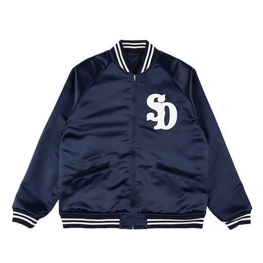サテン面はスポーツの盛んなカリフォルニアをイメージしたスタジャン仕様で、ロゴパッチ刺繍にて仕上げています。